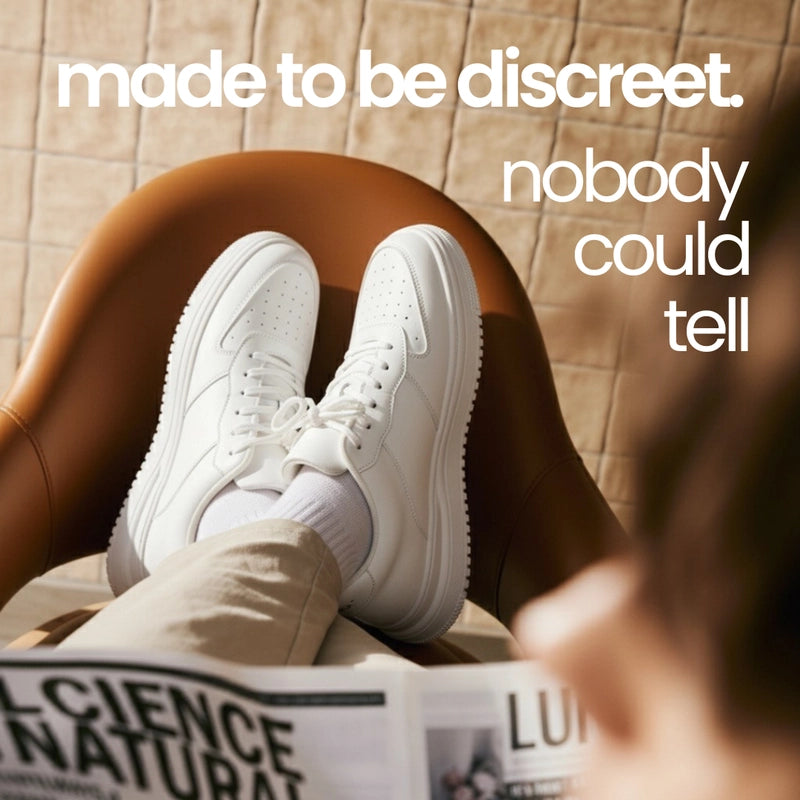 No bulky insoles or uncomfortable inserts. Just a clean sneaker that makes you +10cm (4") taller without